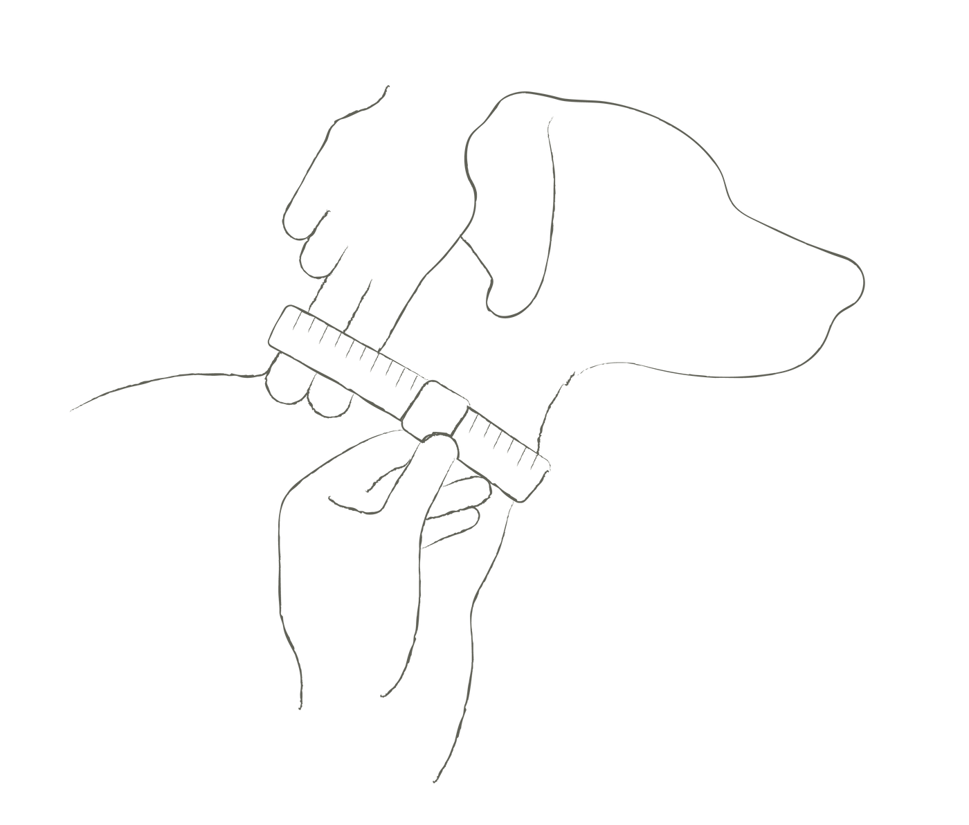 Take a soft tape measure or piece of string and measure where the collar will sit on your dog's neck. Allow for two fingers of space in between the collar and neck.